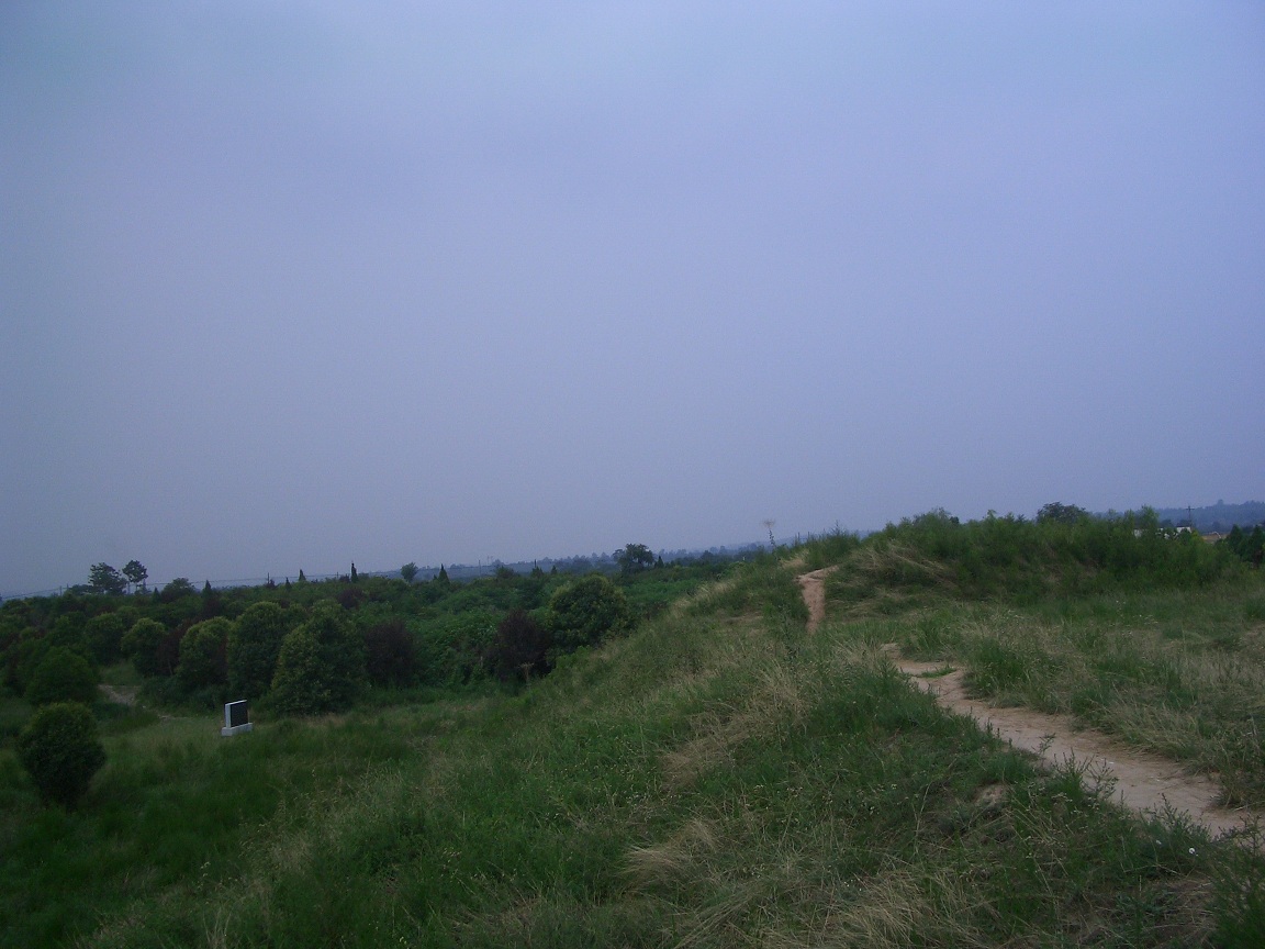 前方、渭河の遥か先に漢の長安、明の長安を望む。